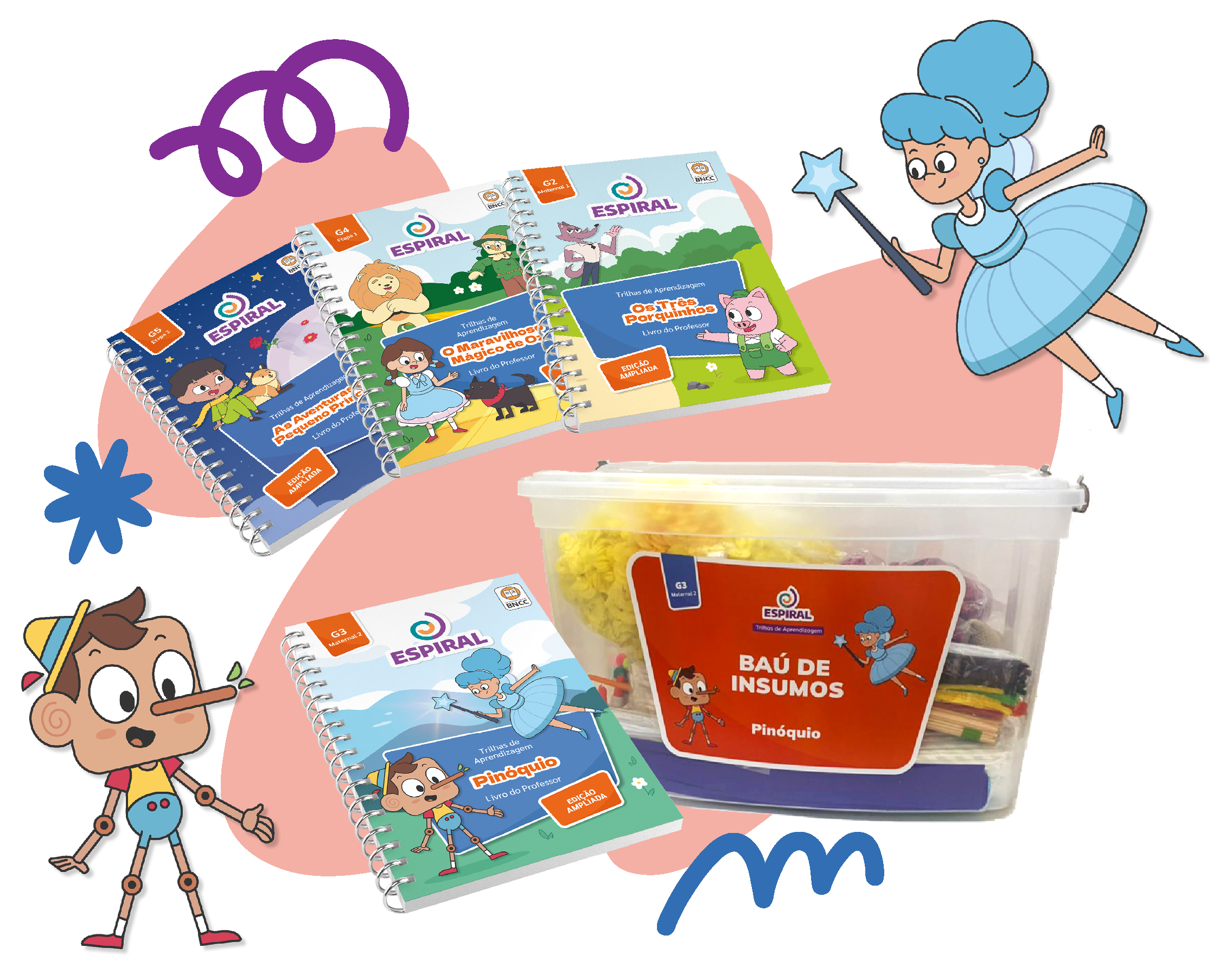 Cada livro conta com um baú de insumos que apoia o trabalho